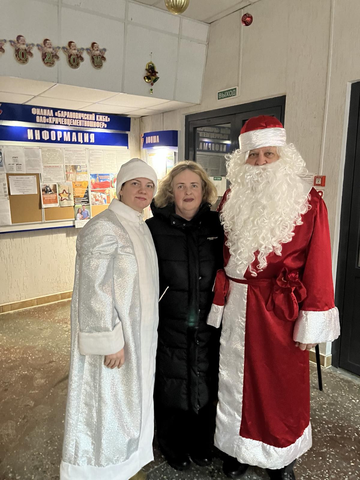 В преддверии Нового года в филиале "Барановичский КЖБК" ОАО "Кричевцементноштфер" состоялась встреча Деда мороза и Снегурочки. Дед мороз побывал в каждом цеху, поздравил с наступающим Новым годом и не оставил работников без сладких подарков.